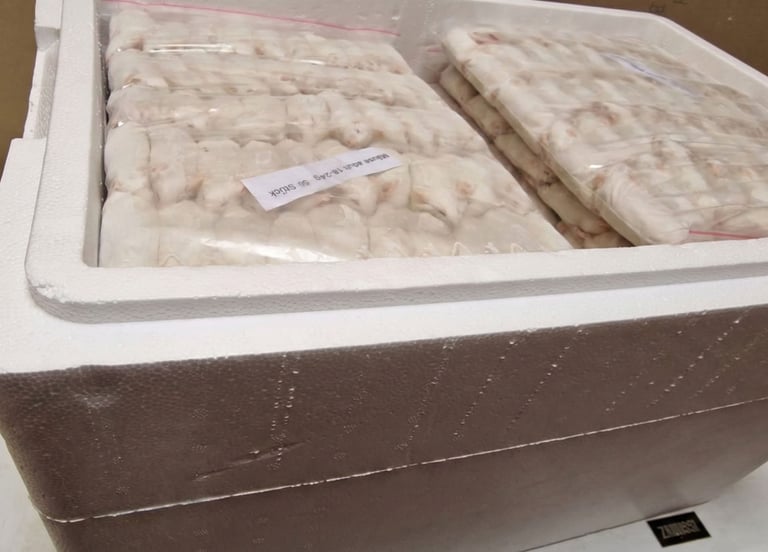Nutného obalového materiálu: Do ceny dopravy sa automaticky započítava potrebný počet polystyrénových termoboxov a chladiacich médií (suchý ľad), aby tovar vydržal zmrazený počas dopravy.